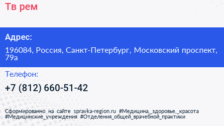Тв-рем по адресу 196084, Россия, Санкт-Петербург, Московский проспект, 79а в дальнейшем Организация, размещена в следующих категориях: