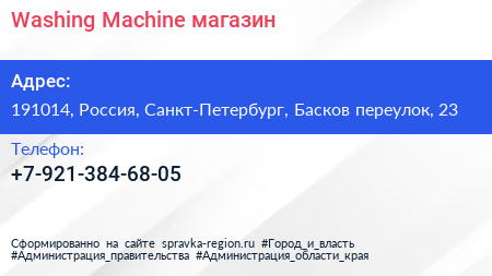 Washing Machine, магазин по адресу 191014, Россия, Санкт-Петербург, Басков переулок, 23 в дальнейшем Организация, размещена в следующих категориях:
