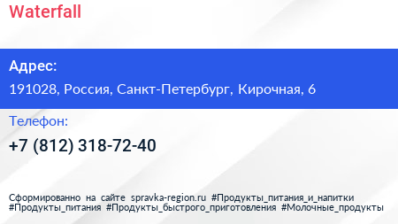 Waterfall по адресу 191028, Россия, Санкт-Петербург, Кирочная, 6 в дальнейшем Организация, размещена в следующих категориях:
