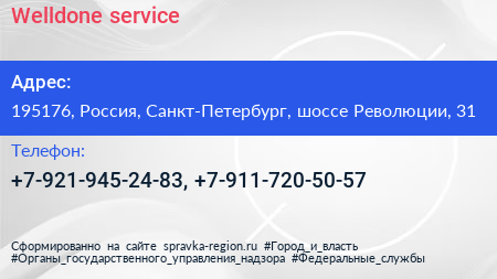 Welldone service по адресу 195176, Россия, Санкт-Петербург, шоссе Революции, 31 в дальнейшем Организация, размещена в следующих категориях: