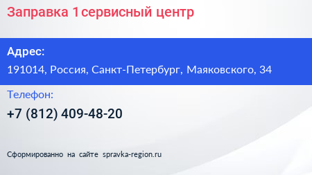 Заправка №1, сервисный центр по адресу 191014, Россия, Санкт-Петербург, Маяковского, 34 в дальнейшем Организация, размещена в следующих категориях: