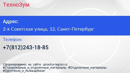 ТехноЗум по адресу 2-я Советская улица, 12, Санкт-Петербург в дальнейшем Организация, размещена в следующих категориях:
