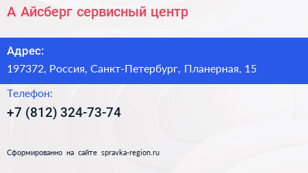 А-Айсберг, сервисный центр по адресу 197372, Россия, Санкт-Петербург, Планерная, 15 в дальнейшем Организация, размещена в следующих категориях: