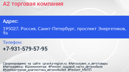 А2, торговая компания по адресу 195027, Россия, Санкт-Петербург, проспект Энергетиков, 9а в дальнейшем Организация, размещена в следующих категориях: