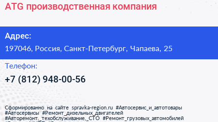 ATG, производственная компания по адресу 197046, Россия, Санкт-Петербург, Чапаева, 25 в дальнейшем Организация, размещена в следующих категориях: