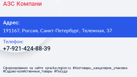 АЗС Компани по адресу 191167, Россия, Санкт-Петербург, Тележная, 37 в дальнейшем Организация, размещена в следующих категориях: