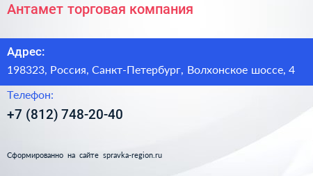 Антамет, торговая компания по адресу 198323, Россия, Санкт-Петербург, Волхонское шоссе, 4 в дальнейшем Организация, размещена в следующих категориях: