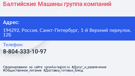 Балтийские Машины, группа компаний по адресу 194292, Россия, Санкт-Петербург, 1-й Верхний переулок, 12Б в дальнейшем Организация, размещена в следующих категориях: