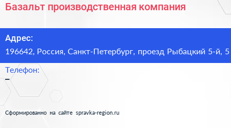 Базальт, производственная компания по адресу 196642, Россия, Санкт-Петербург, проезд Рыбацкий 5-й, 5 в дальнейшем Организация, размещена в следующих категориях: