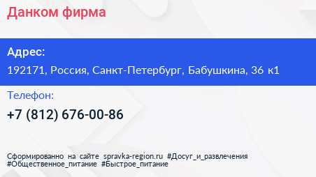 Данком, фирма по адресу 192171, Россия, Санкт-Петербург, Бабушкина, 36 к1 в дальнейшем Организация, размещена в следующих категориях: