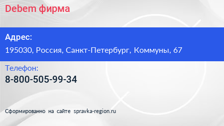Debem, фирма по адресу 195030, Россия, Санкт-Петербург, Коммуны, 67 в дальнейшем Организация, размещена в следующих категориях: