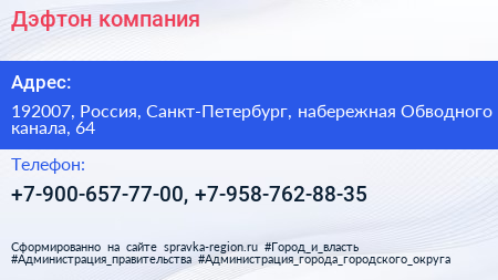 Дэфтон, компания по адресу 192007, Россия, Санкт-Петербург, набережная Обводного канала, 64 в дальнейшем Организация, размещена в следующих категориях: