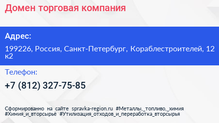 Домен, торговая компания по адресу 199226, Россия, Санкт-Петербург, Кораблестроителей, 12 к2 в дальнейшем Организация, размещена в следующих категориях: