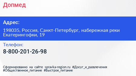 Допмед по адресу 198035, Россия, Санкт-Петербург, набережная реки Екатерингофки, 19 в дальнейшем Организация, размещена в следующих категориях: