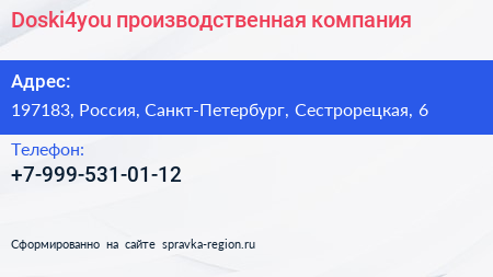 Doski4you, производственная компания по адресу 197183, Россия, Санкт-Петербург, Сестрорецкая, 6 в дальнейшем Организация, размещена в следующих категориях: