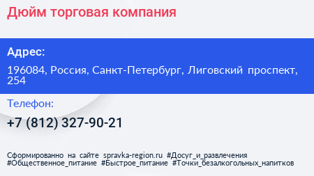 Дюйм, торговая компания по адресу 196084, Россия, Санкт-Петербург, Лиговский проспект, 254 в дальнейшем Организация, размещена в следующих категориях: