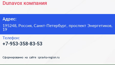 Dunavox, компания по адресу 195248, Россия, Санкт-Петербург, проспект Энергетиков, 19 в дальнейшем Организация, размещена в следующих категориях: