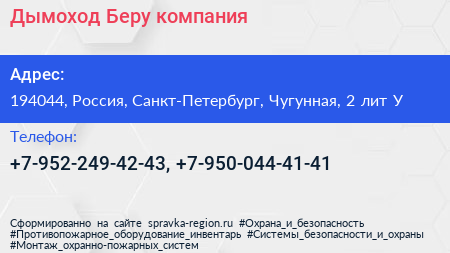 Дымоход Беру, компания по адресу 194044, Россия, Санкт-Петербург, Чугунная, 2 лит У в дальнейшем Организация, размещена в следующих категориях: