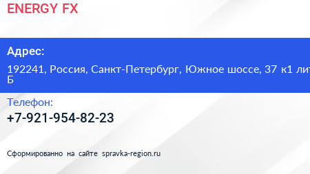 ENERGY FX по адресу 192241, Россия, Санкт-Петербург, Южное шоссе, 37 к1 лит Б в дальнейшем Организация, размещена в следующих категориях:
