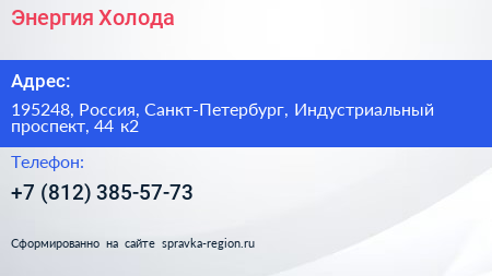Энергия Холода по адресу 195248, Россия, Санкт-Петербург, Индустриальный проспект, 44 к2 в дальнейшем Организация, размещена в следующих категориях:
