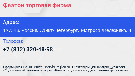 Фаэтон, торговая фирма по адресу 197343, Россия, Санкт-Петербург, Матроса Железняка, 41 в дальнейшем Организация, размещена в следующих категориях: