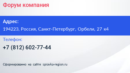 Форум, компания по адресу 194223, Россия, Санкт-Петербург, Орбели, 27 к4 в дальнейшем Организация, размещена в следующих категориях: