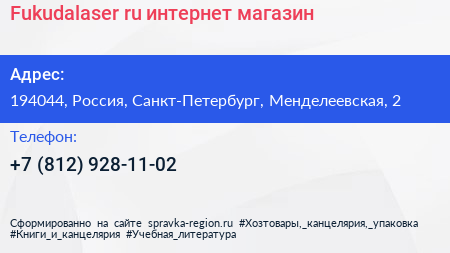 Fukudalaser.ru, интернет-магазин по адресу 194044, Россия, Санкт-Петербург, Менделеевская, 2 в дальнейшем Организация, размещена в следующих категориях: