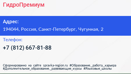 ГидроПремиум по адресу 194044, Россия, Санкт-Петербург, Чугунная, 2 в дальнейшем Организация, размещена в следующих категориях:
