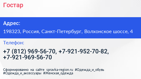 Гостар по адресу 198323, Россия, Санкт-Петербург, Волхонское шоссе, 4 в дальнейшем Организация, размещена в следующих категориях:
