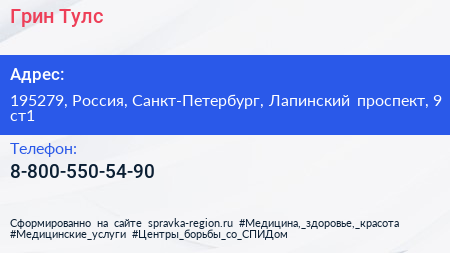 Грин Тулс по адресу 195279, Россия, Санкт-Петербург, Лапинский проспект, 9 ст1 в дальнейшем Организация, размещена в следующих категориях: