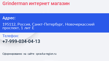 Grinderman, интернет-магазин по адресу 195112, Россия, Санкт-Петербург, Новочеркасский проспект, 1 лит Е в дальнейшем Организация, размещена в следующих категориях: