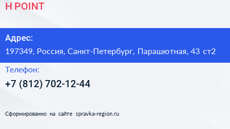 H-POINT по адресу 197349, Россия, Санкт-Петербург, Парашютная, 43 ст2 в дальнейшем Организация, размещена в следующих категориях: