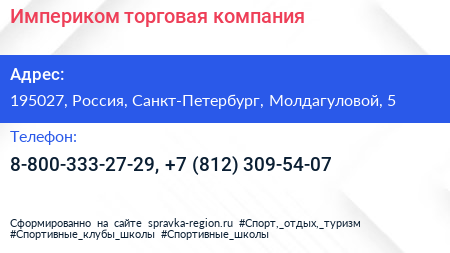 Империком, торговая компания по адресу 195027, Россия, Санкт-Петербург, Молдагуловой, 5 в дальнейшем Организация, размещена в следующих категориях: