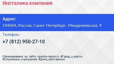 Инсталика, компания по адресу 194044, Россия, Санкт-Петербург, Менделеевская, 9 в дальнейшем Организация, размещена в следующих категориях: