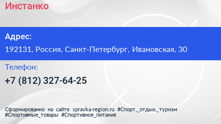 Инстанко по адресу 192131, Россия, Санкт-Петербург, Ивановская, 30 в дальнейшем Организация, размещена в следующих категориях: