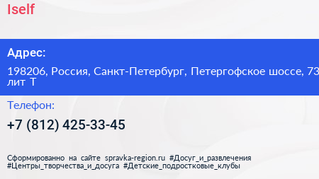 Iself по адресу 198206, Россия, Санкт-Петербург, Петергофское шоссе, 73 лит Т в дальнейшем Организация, размещена в следующих категориях: