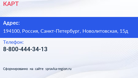 КАРТ по адресу 194100, Россия, Санкт-Петербург, Новолитовская, 15д в дальнейшем Организация, размещена в следующих категориях:
