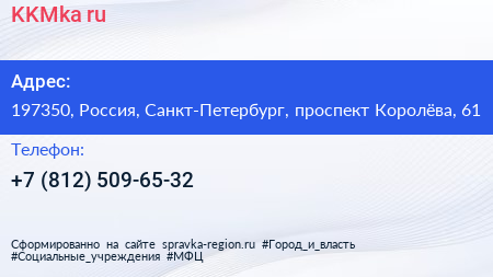 KKMka.ru по адресу 197350, Россия, Санкт-Петербург, проспект Королёва, 61 в дальнейшем Организация, размещена в следующих категориях: