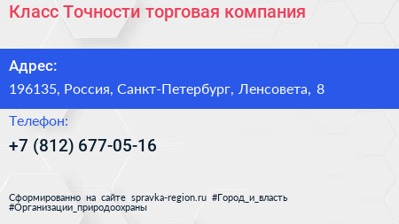 Класс Точности, торговая компания по адресу 196135, Россия, Санкт-Петербург, Ленсовета, 8 в дальнейшем Организация, размещена в следующих категориях: