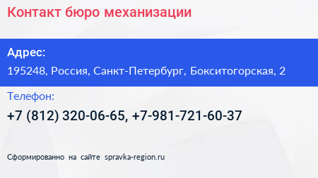 Контакт, бюро механизации по адресу 195248, Россия, Санкт-Петербург, Бокситогорская, 2 в дальнейшем Организация, размещена в следующих категориях: