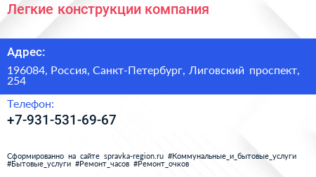 Легкие конструкции, компания по адресу 196084, Россия, Санкт-Петербург, Лиговский проспект, 254 в дальнейшем Организация, размещена в следующих категориях: