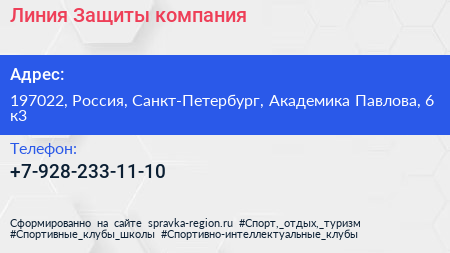 Линия Защиты, компания по адресу 197022, Россия, Санкт-Петербург, Академика Павлова, 6 к3 в дальнейшем Организация, размещена в следующих категориях: