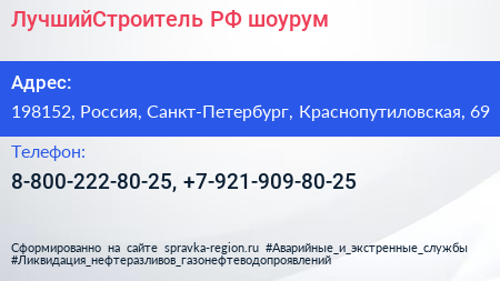 ЛучшийСтроитель.РФ, шоурум по адресу 198152, Россия, Санкт-Петербург, Краснопутиловская, 69 в дальнейшем Организация, размещена в следующих категориях: