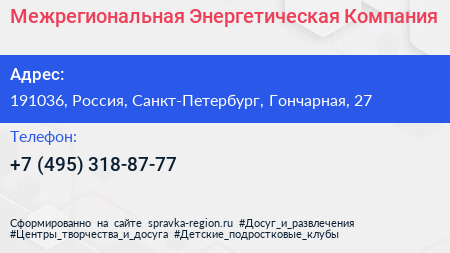 Межрегиональная Энергетическая Компания по адресу 191036, Россия, Санкт-Петербург, Гончарная, 27 в дальнейшем Организация, размещена в следующих категориях: