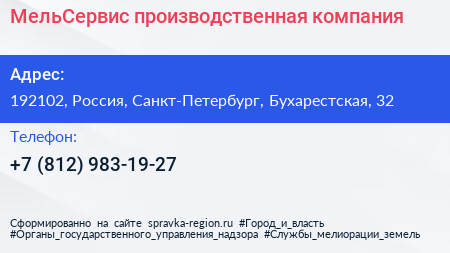 МельСервис, производственная компания по адресу 192102, Россия, Санкт-Петербург, Бухарестская, 32 в дальнейшем Организация, размещена в следующих категориях: