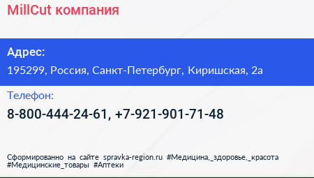 MillCut, компания по адресу 195299, Россия, Санкт-Петербург, Киришская, 2а в дальнейшем Организация, размещена в следующих категориях: