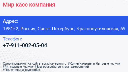 Мир касс, компания по адресу 198152, Россия, Санкт-Петербург, Краснопутиловская, 69 в дальнейшем Организация, размещена в следующих категориях: