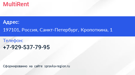 MultiRent по адресу 197101, Россия, Санкт-Петербург, Кропоткина, 1 в дальнейшем Организация, размещена в следующих категориях: