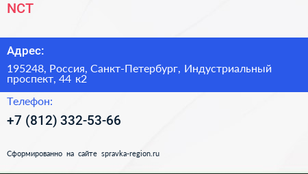 NCT по адресу 195248, Россия, Санкт-Петербург, Индустриальный проспект, 44 к2 в дальнейшем Организация, размещена в следующих категориях:
