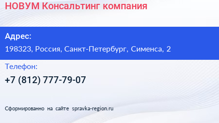 НОВУМ Консальтинг, компания по адресу 198323, Россия, Санкт-Петербург, Сименса, 2 в дальнейшем Организация, размещена в следующих категориях: